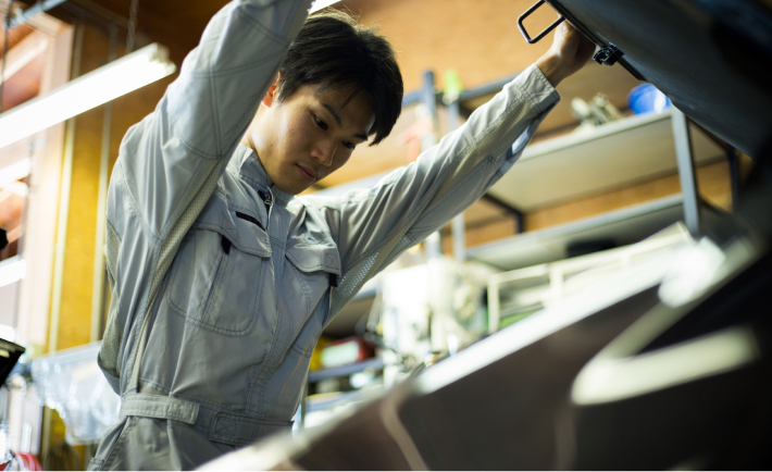あらゆる車種の鈑金をこなしてきた経験から、正規部品交換、リサイクルパーツ交換、その他の板金加工などの特徴をお客様にご説明し、ご理解いただいたうえで、お客様がお決めになったどんな修理方法でも、迅速、丁寧で確実な作業をさせていただきます。